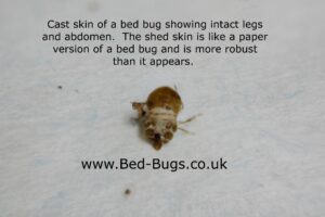 Finding translucent, papery shells on your bedding or furniture is a strong indicator of a bed bug problem. These are the shed exoskeletons, or castings, left behind as the insects grow through five distinct nymph stages. These casts look exactly like a smaller version of the insect itself, ranging in size from 1 to 4 mm long. Because each nymph sheds five times, multiple castings are often found, confirming an active and breeding infestation.